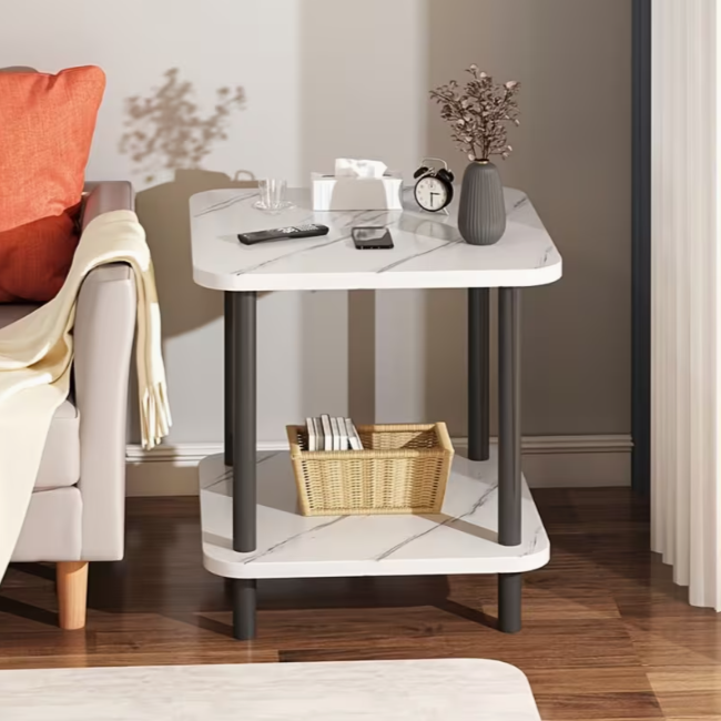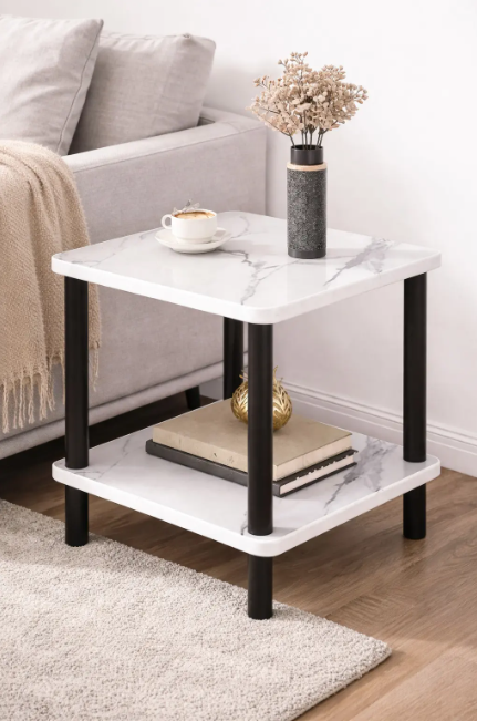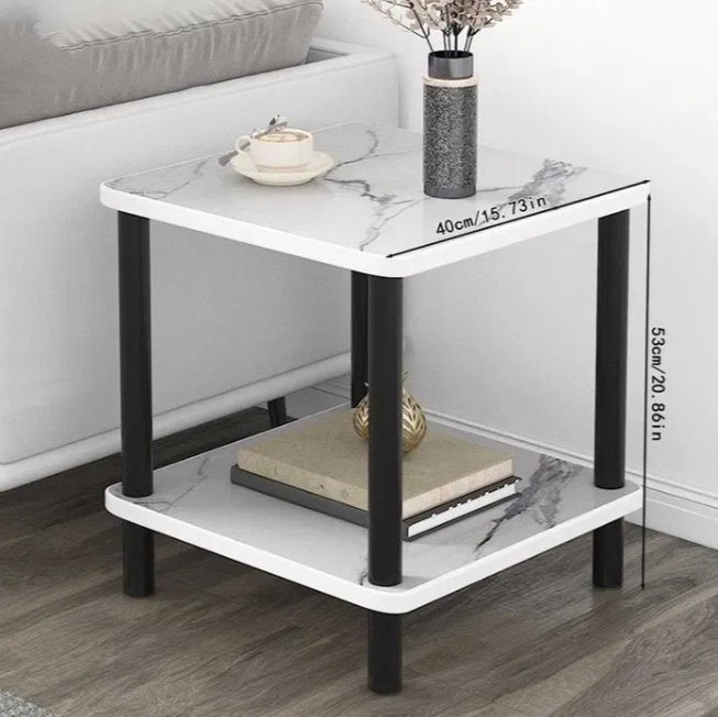 Завдяки двоярусній конструкції столик дозволяє зручно розмістити книги, журнали, декор або дрібні аксесуари, залишаючи верхню поверхню вільною для чашки кави чи чаю. Компактні розміри роблять його ідеальним вибором навіть для невеликих приміщень.