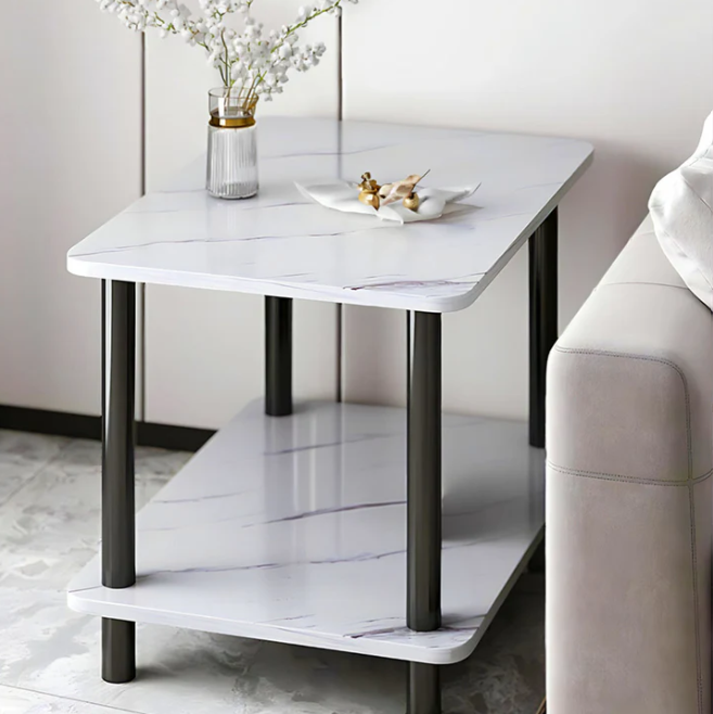 Стильний інтер’єрний журнальний столик — це сучасне та практичне рішення для вітальні, спальні або зони відпочинку. Лаконічний дизайн з ефектом білого мармуру надає приміщенню елегантності, легкості та візуальної чистоти.
